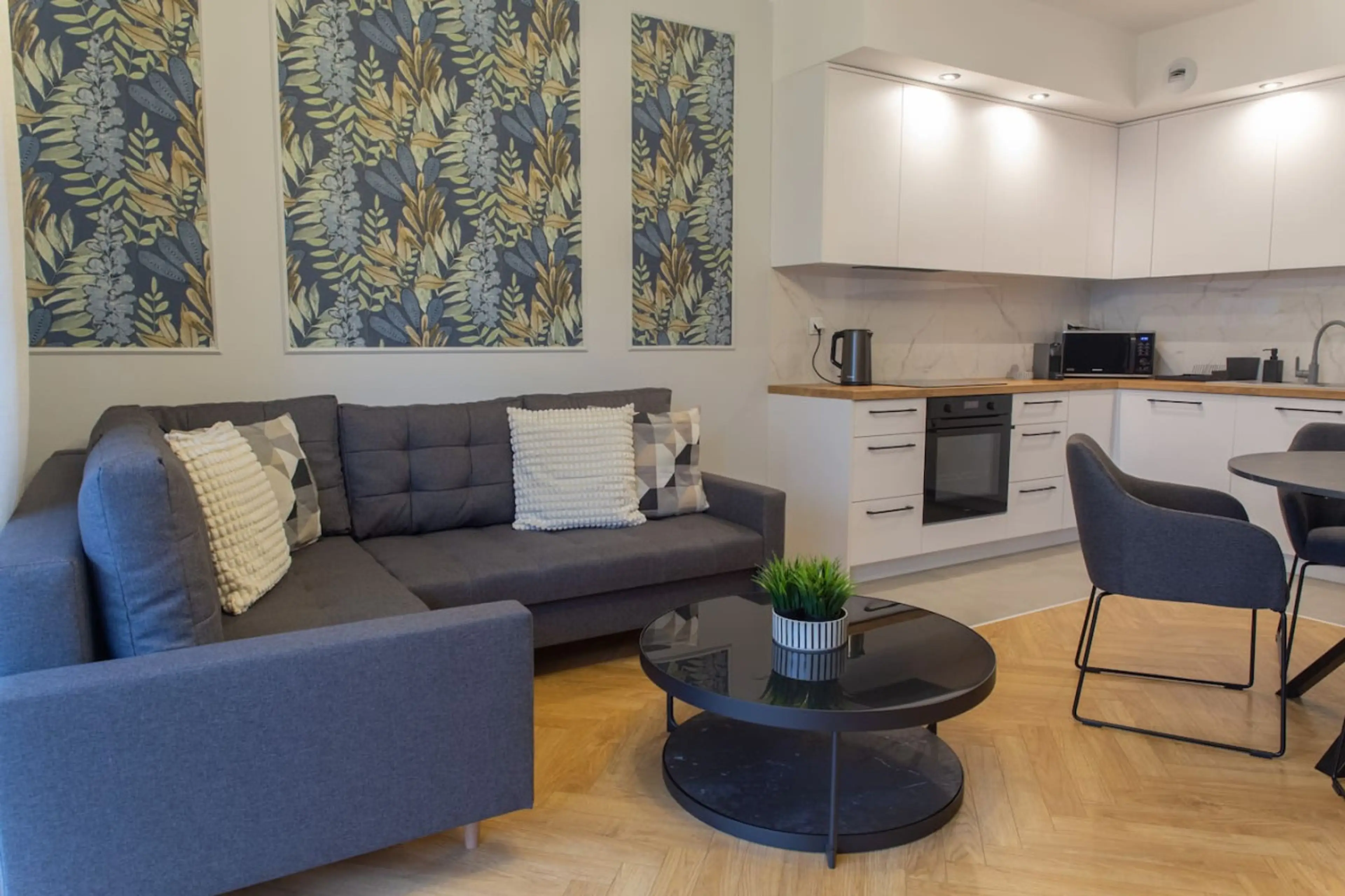 Apartment Smardzewska 5 / Grunwald is a guarantee of peace and rest. Modern and stylish with a bright living room with a large window. Right outside the window there is a terrace and beautiful greenery. The apartment is located in the new Cerisier Residence housing estate. There is an underground p...